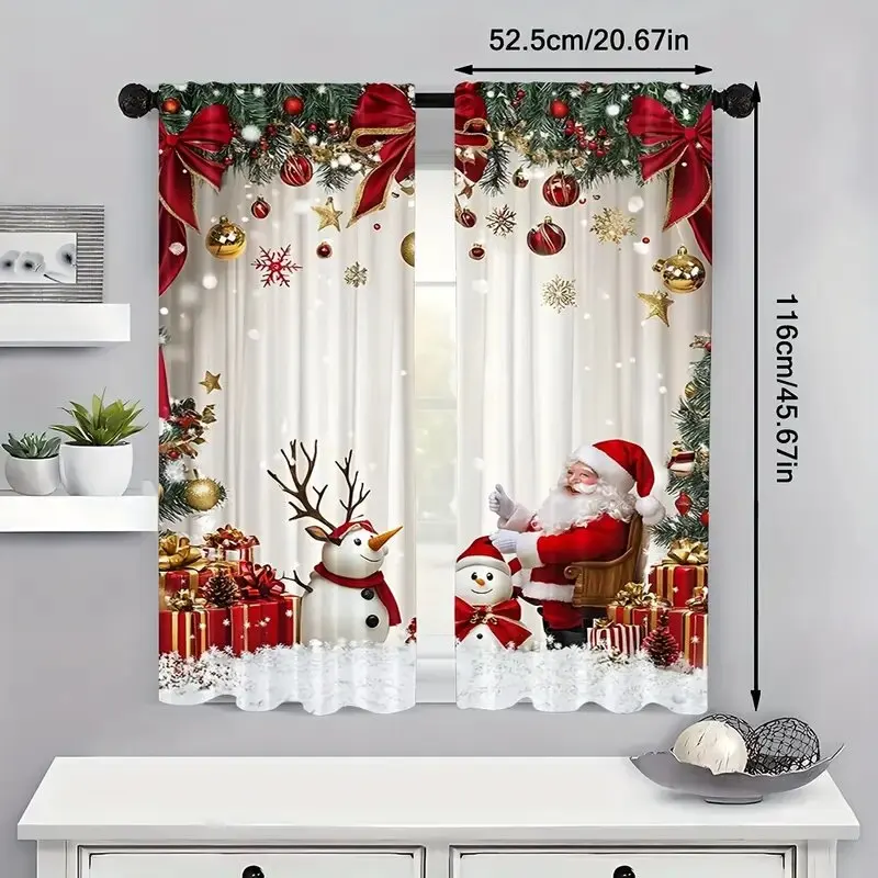 2pcs - Christmas Santa Claus Christmas print curtains, pole bag curtains, home decoration, room decoration