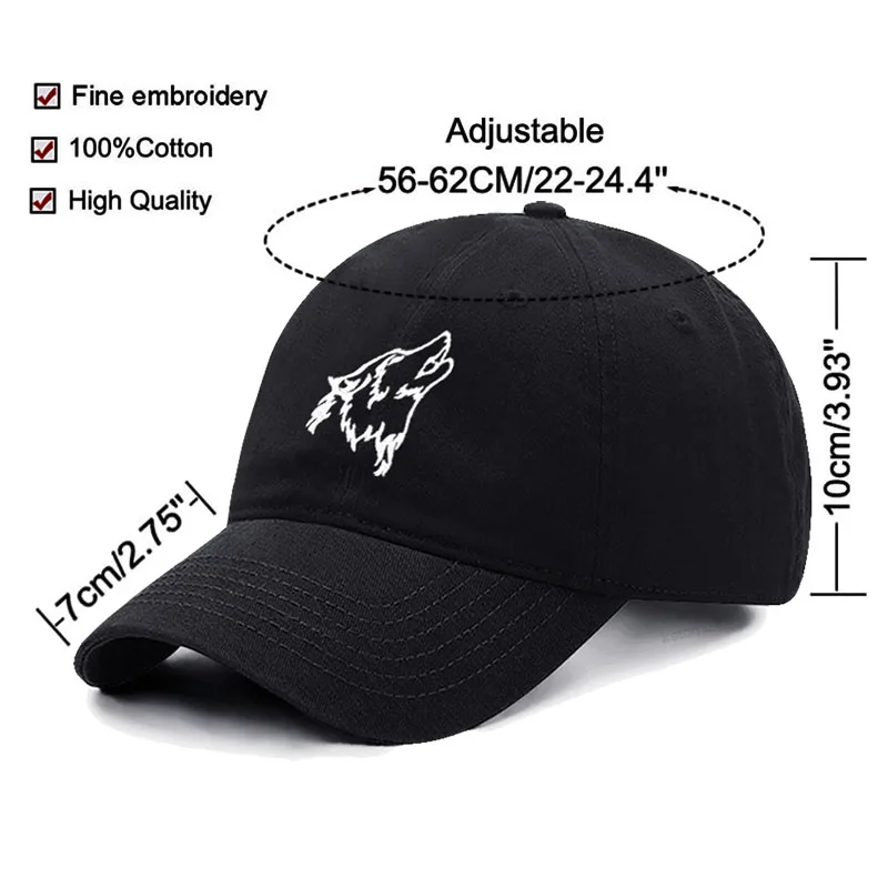 Women's Baseball Cap Men's Washed Cotton Wolf Howl Embroidery Embroidery Dad Hat Sport Golf Caps For Man Sun Hats Dropshipping