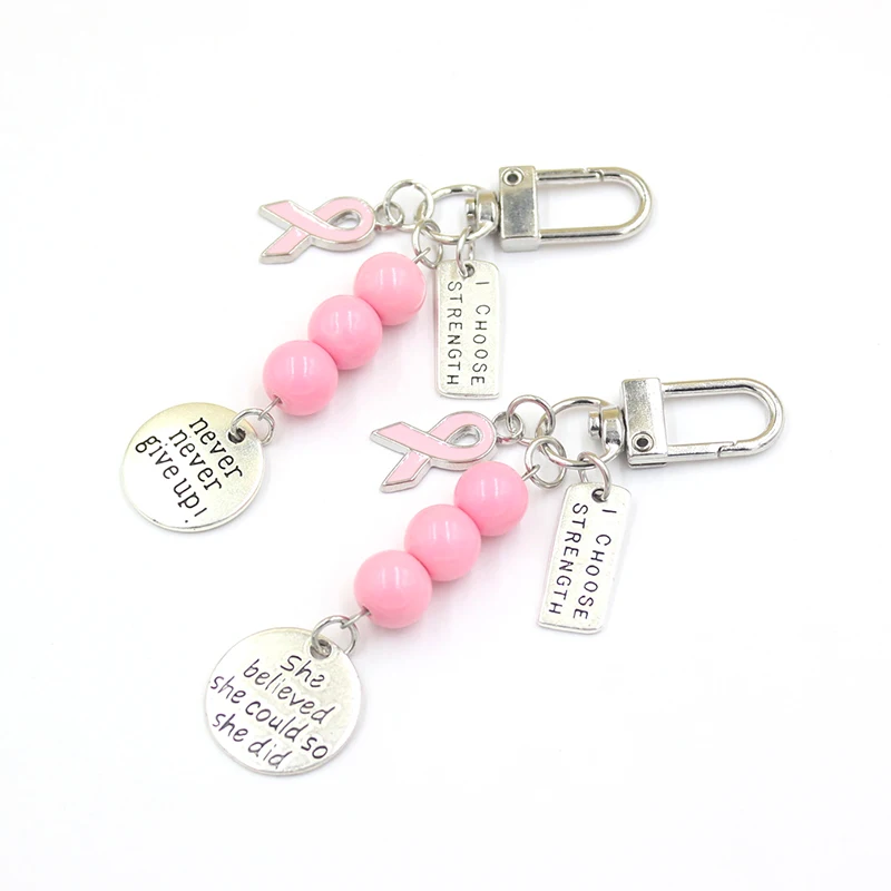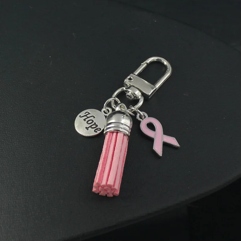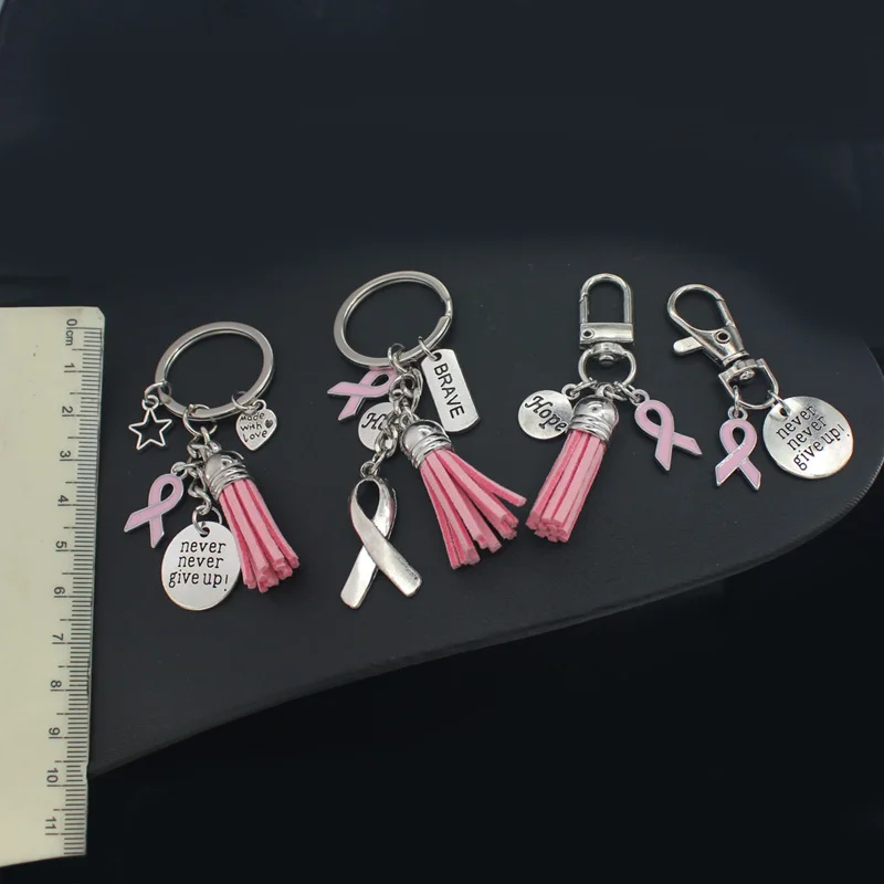 2025New Arrival Breast Cancer Awareness Jewelry Pink Ribbon Tassel Keychains Keyring Never Give Up Hope Charms Key Chain Jewelry