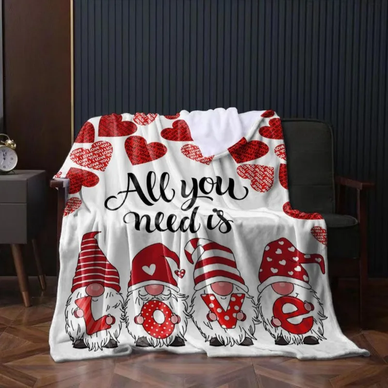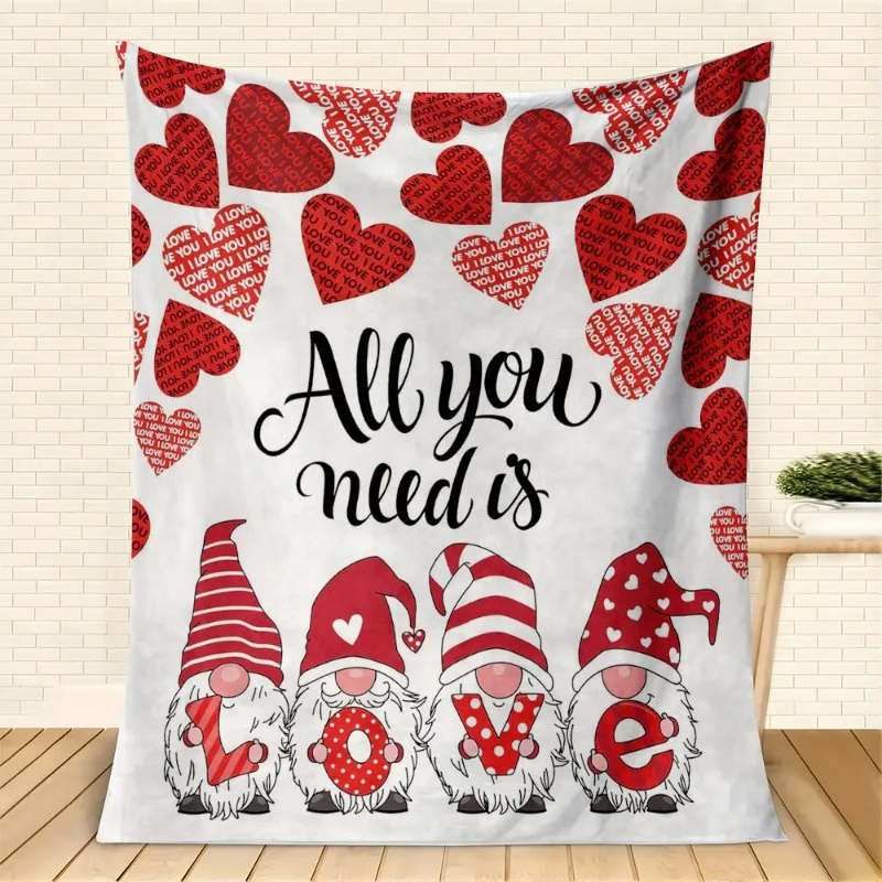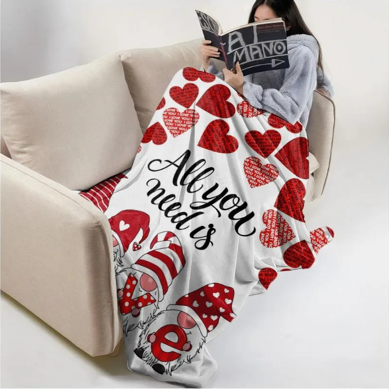 1PC Red Heart Blanket Gnome Love For Wife Girlfriend Anniversary Birthday Gifts for Festival Gifts Love Blankets all season use