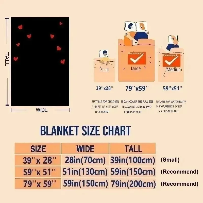 Size:150cm x 200cm= (59.05 in x 78.74 in)---Recommended, suitable for multiple scenarios, would rather choose large than small.